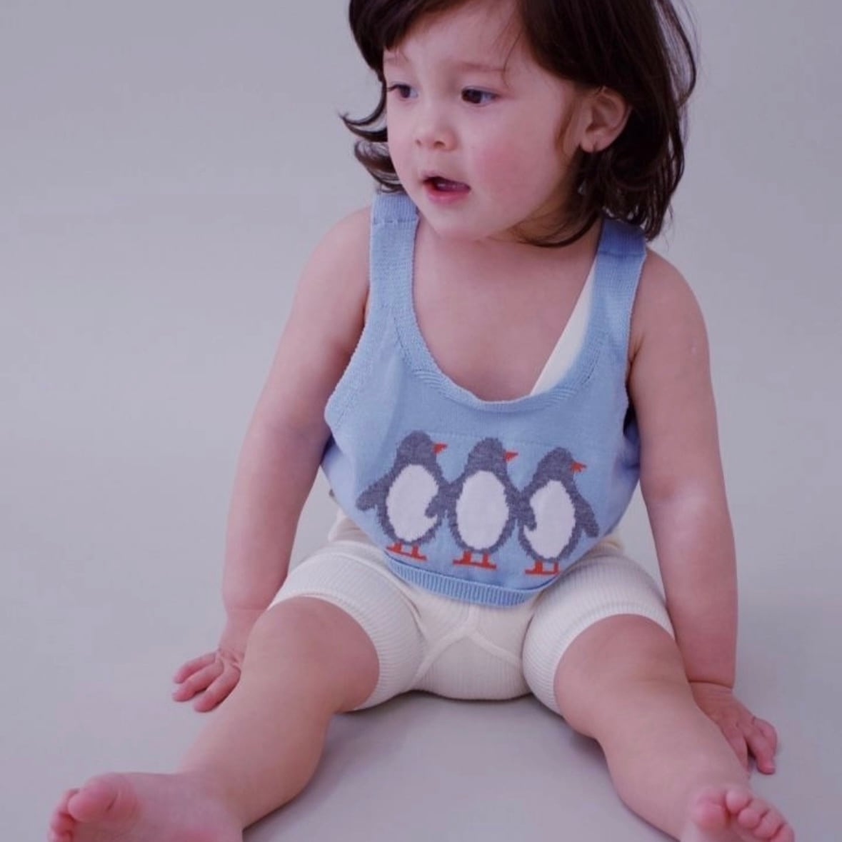 子供達が大好きなペンギンを刺繍したサマーニットベスト。