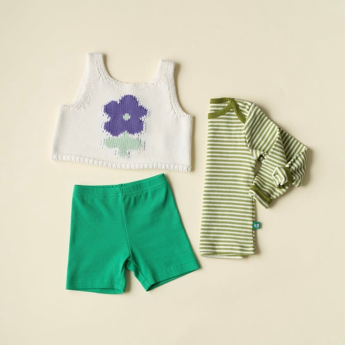 程よい丈とゆったりしたシルエットで何にでも合わせやすく、伸縮性のあるニットなので活動量の多い子供達でも快適に過ごせます。