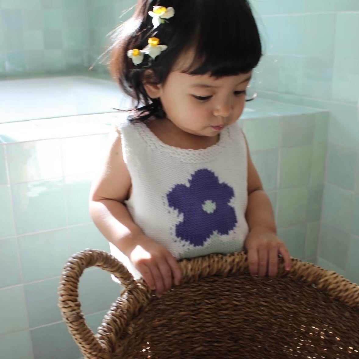 プレイグラウンドのシグネチャーアイテムであり、春シーズンに新たに登場したフラワーノースリーブニットです。